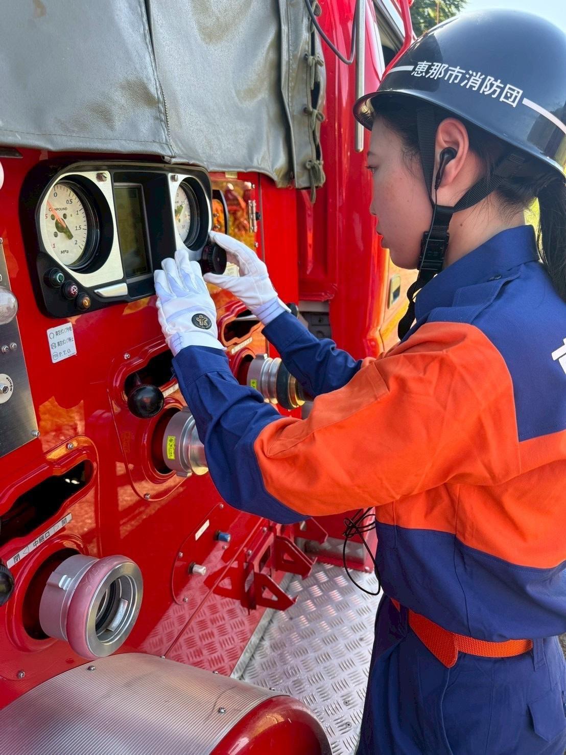消防団の活動の幅の広さです。私は、車のマニュアル免許やバイクの免許を持っていて、ドローンもやったことがあります。消防団は、これらのことをすべて活動の中でやれます。この“やれることの多さ”に惹かれました。Q3 恵那市には女性消防隊がありますが、分団に入団されたのはなぜですか。男性ばかりの環境でとまどいはありませんか。
