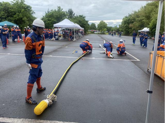 令和7年5月25日に多治見市で開催された「第45回多治見市消防協会消防競練会」の様子です。