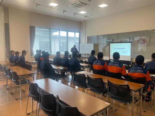 岐阜県消防学校と揖斐郡消防組合から講師を招き、5月に新入団員の合同研修と幹部研修を行っています。