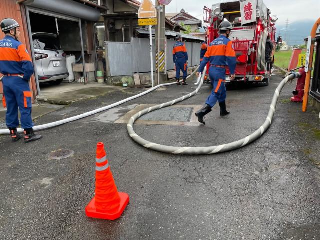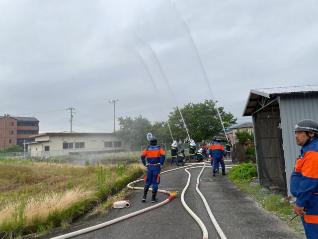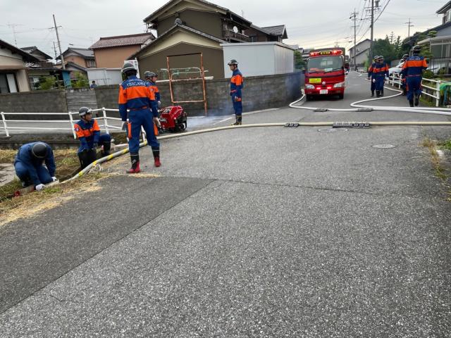 年4回、公民館、神社等で、火災に備えた水出し訓練を行っています。