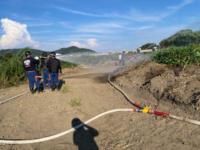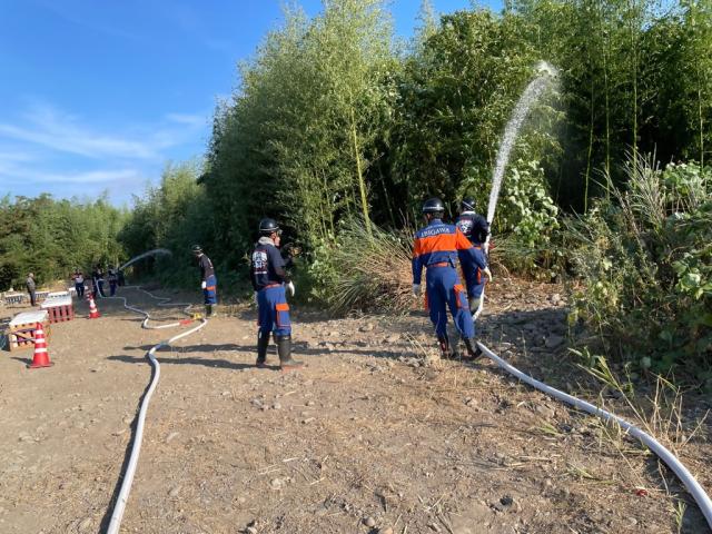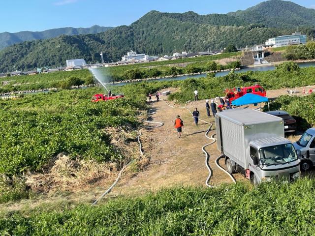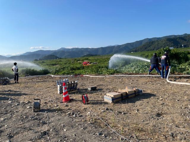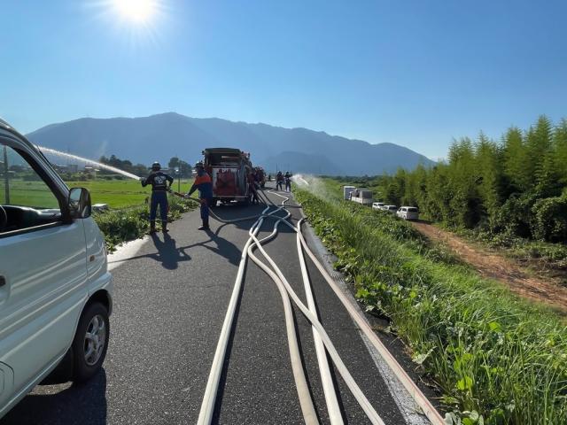 花火大会前に火災が発生しないために事前に散水を行っています。