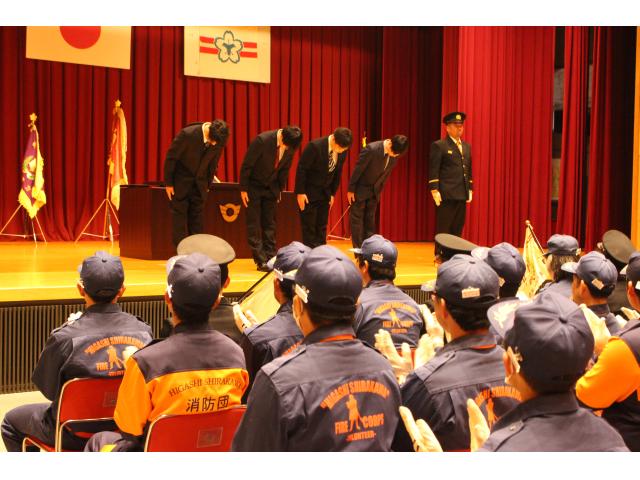 東白川村消防団の入退団式が令和7年3月9日行われました。4人が入団しました。