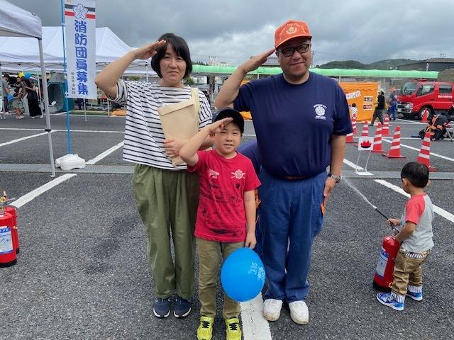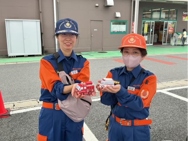 消防フェスタにて消防団員がピアゴ瑞浪店駐車場にて、消火器の的あてゲームや消防団のPR活動を行いました。