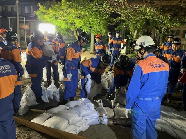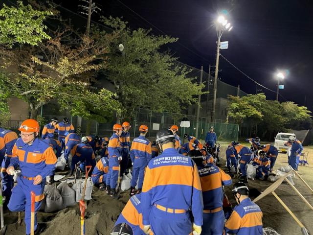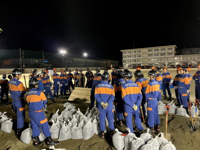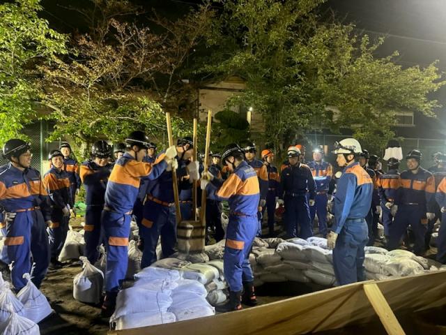 5月21日(水)に梅雨時期の河川増水に備え、水防訓練を行いました。土のうの作り方、止水の工法を学びました。
