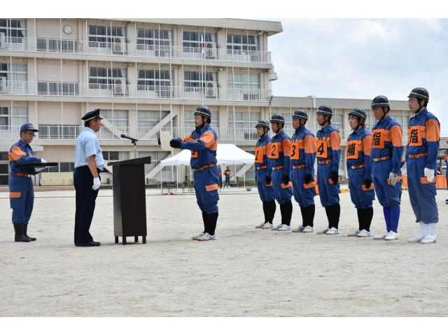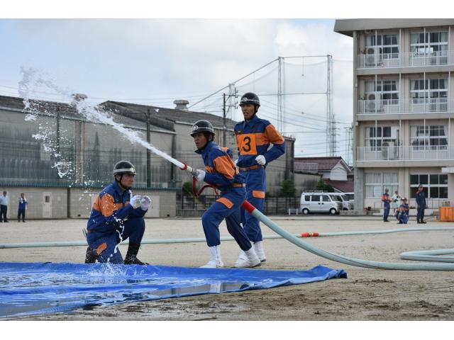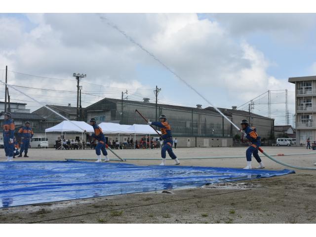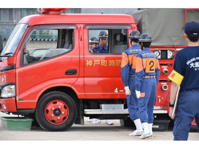 7月13日に神戸中学校グラウンド内にて行われた町の審査大会では、各分団が日頃の訓練の成果を存分に発揮しました。