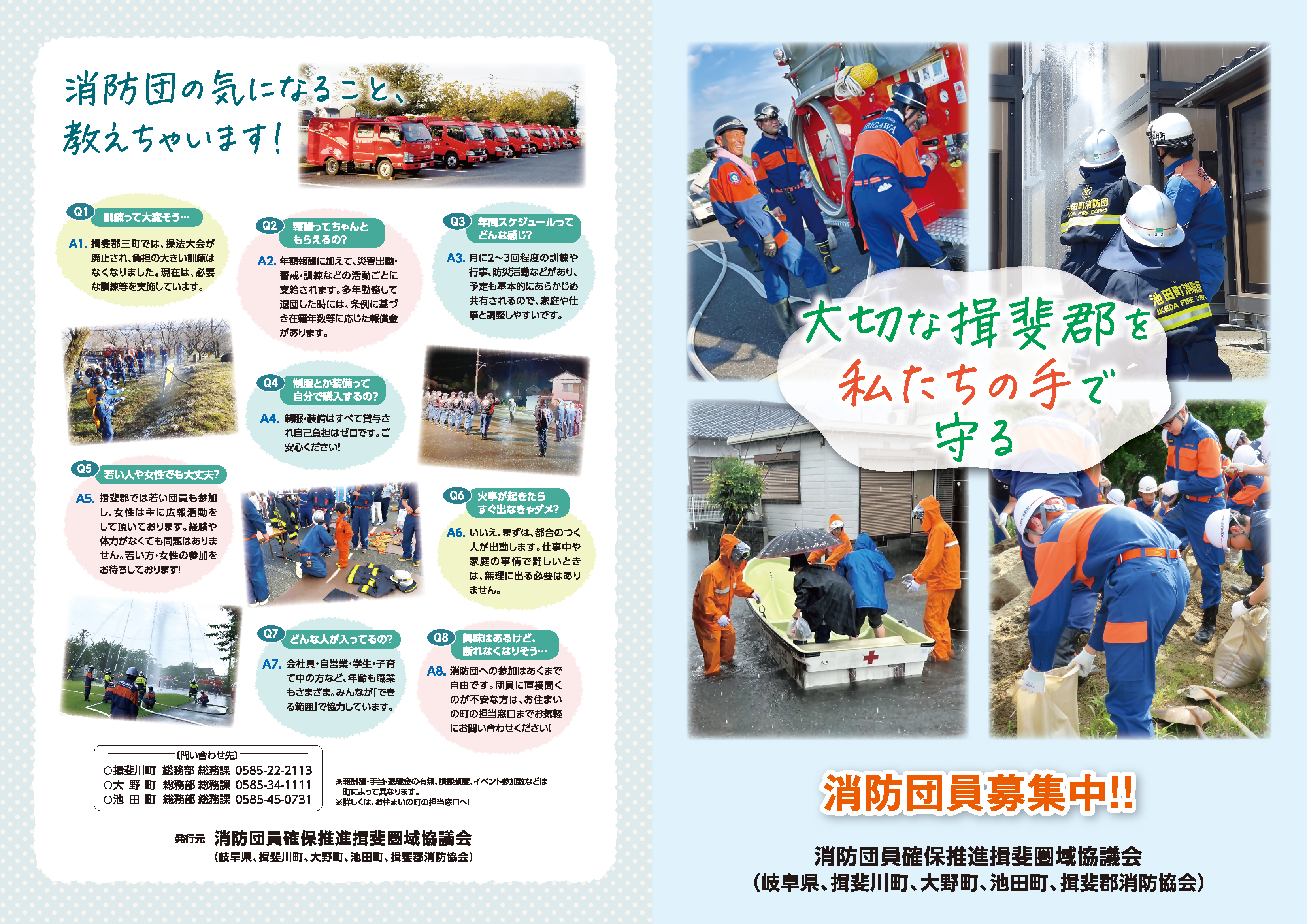 地域の安全を守る消防団員の確保に向けた啓発活動の一環として、消防団員確保啓発リーフレットを作成しました。