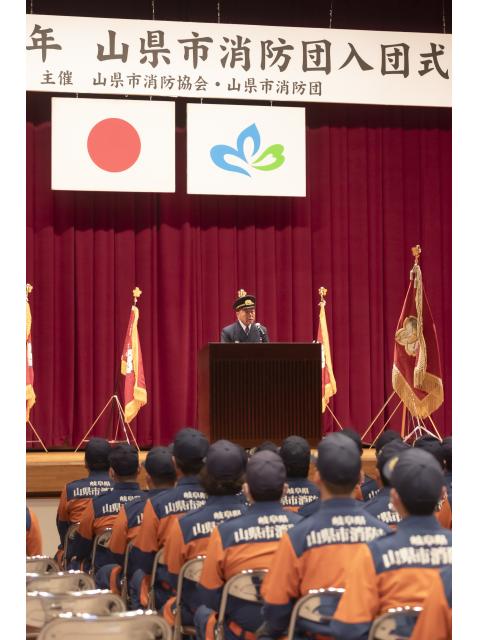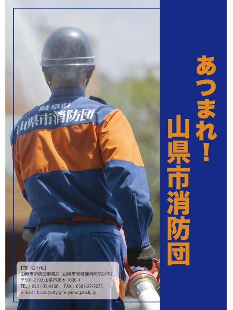 | 消防団のPR | 山県市消防団は、本部、担当区域を管轄する10の分団とラッパ隊、予備隊及び女性隊が置かれています。また、各分団には機能別団員で組織され支援隊、一部の分団には方面隊も置かれています。 災害時に備え、団員の負担にならない程度に全体訓練や研修会、消防水利や機械器具の点検、広報活動などのほか、地域行事の支援など「地域のことは自分たちが守る」という強い思いで、活動しています。 |