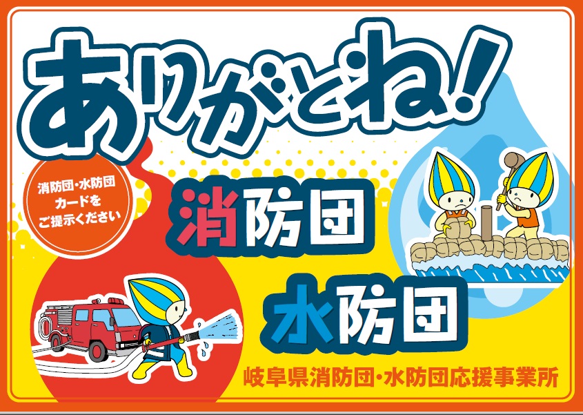 この制度は、岐阜県全域において、消防・防災活動をはじめとする地域の安全・安心のために活動する消防団員及び水防団員を、地域のお店が一定のサービスを通じて応援する気運を高め、